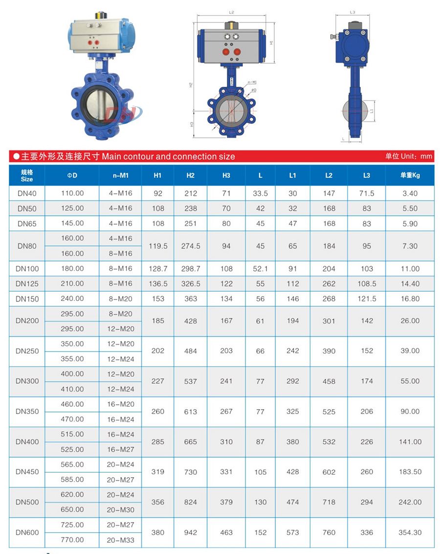 CHTD671X气动支耳式球墨铸铁蝶阀 / Pneumatic trunnion type ductile iron butterfly valve