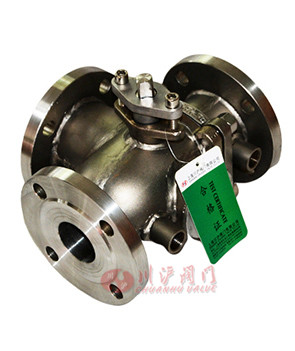 四阀座密封三通球阀具有造型美观,结构紧凑合理,它不仅可实现介质流向的切换,也可使三个通道相互连通,同时也可关闭任一通道,使另处两个通道连通,灵活控制管路中介质的合流分流。 (如流向图B)